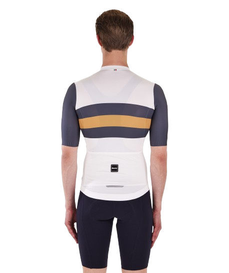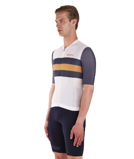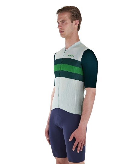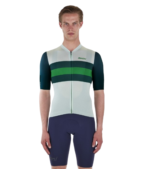 Made with recycled fabrics coming from PET and waste yarns featuring a fresh feel on the skin. This jersey is one of the small steps Santini does every day for a more sustainable future. Sleek fit with raw cut sleeves, raw cut low profile collar and shaped contrast colour silicon gripper on the cuffs for enhanced aero performance. This is the same jersey that the leaders of le TOUR de FRANCE wear. Long covered zipper for great comfort and thermal regulation in the hottest days. Triple rear pocket to take what's essential with you. Elastic with silicon gripper at the waist to keep the jersey always in place while pedaling.