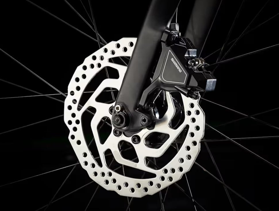 Hydraulic disc brakes — reliable stopping power in all weather conditions.