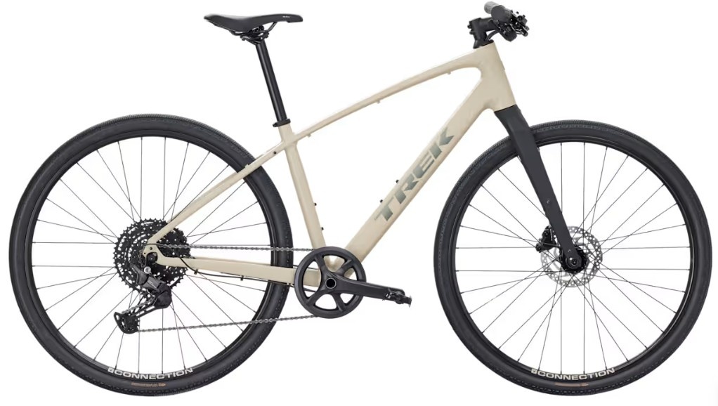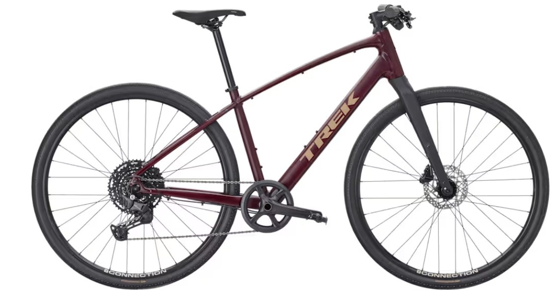 The Trek FX Sport AL 3 is a fast, lightweight, and versatile fitness hybrid designed for riders who want performance on both pavement and mixed surfaces. Its Alpha Gold aluminum frame and carbon fork keep the bike responsive and smooth, while the Shimano CUES 1x10 drivetrain with LINKGLIDE technology offers durable, reliable shifting with minimal maintenance. Wide Bontrager Girona 700×42 mm tires provide excellent grip and comfort, and hydraulic disc brakes ensure confident stopping power in all conditions. With mounts for racks, fenders, and a kickstand, the FX Sport AL 3 is ready for commuting, fitness rides, and all-day adventures.
