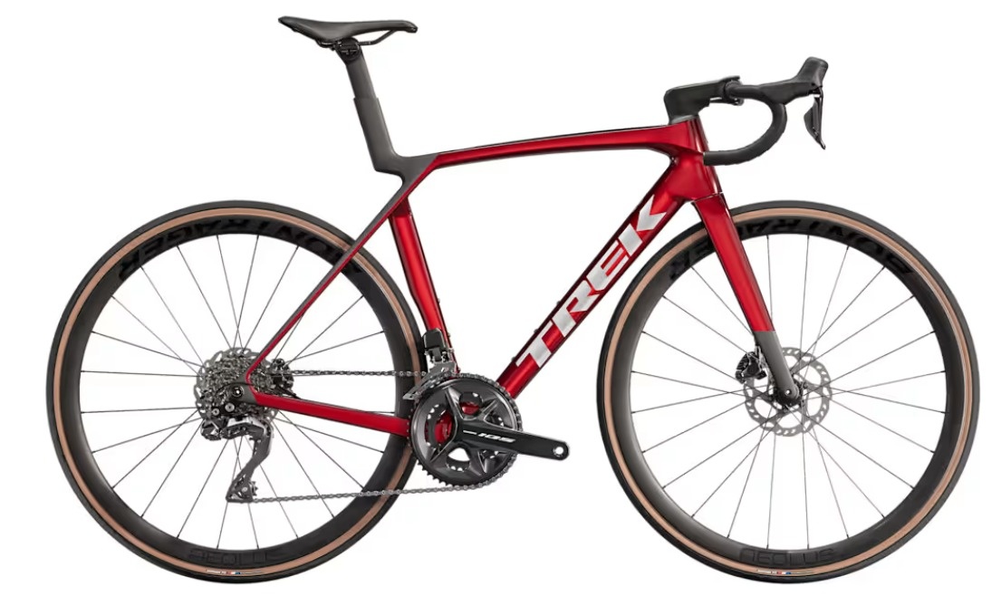 | Fork | Madone Gen 8 full carbon, tapered carbon steerer, internal brake routing, flat‑mount disc brake, 12×100 mm thru‑axle. |