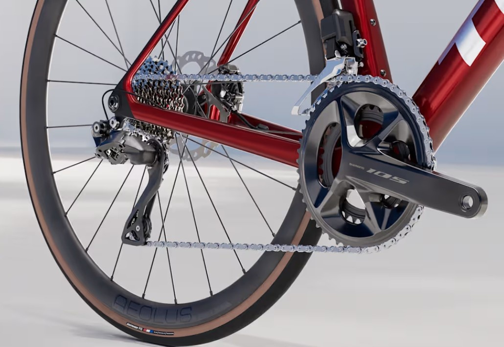 A full 2×12 Shimano 105 Di2 electronic shifting system for fast, crisp gear changes.