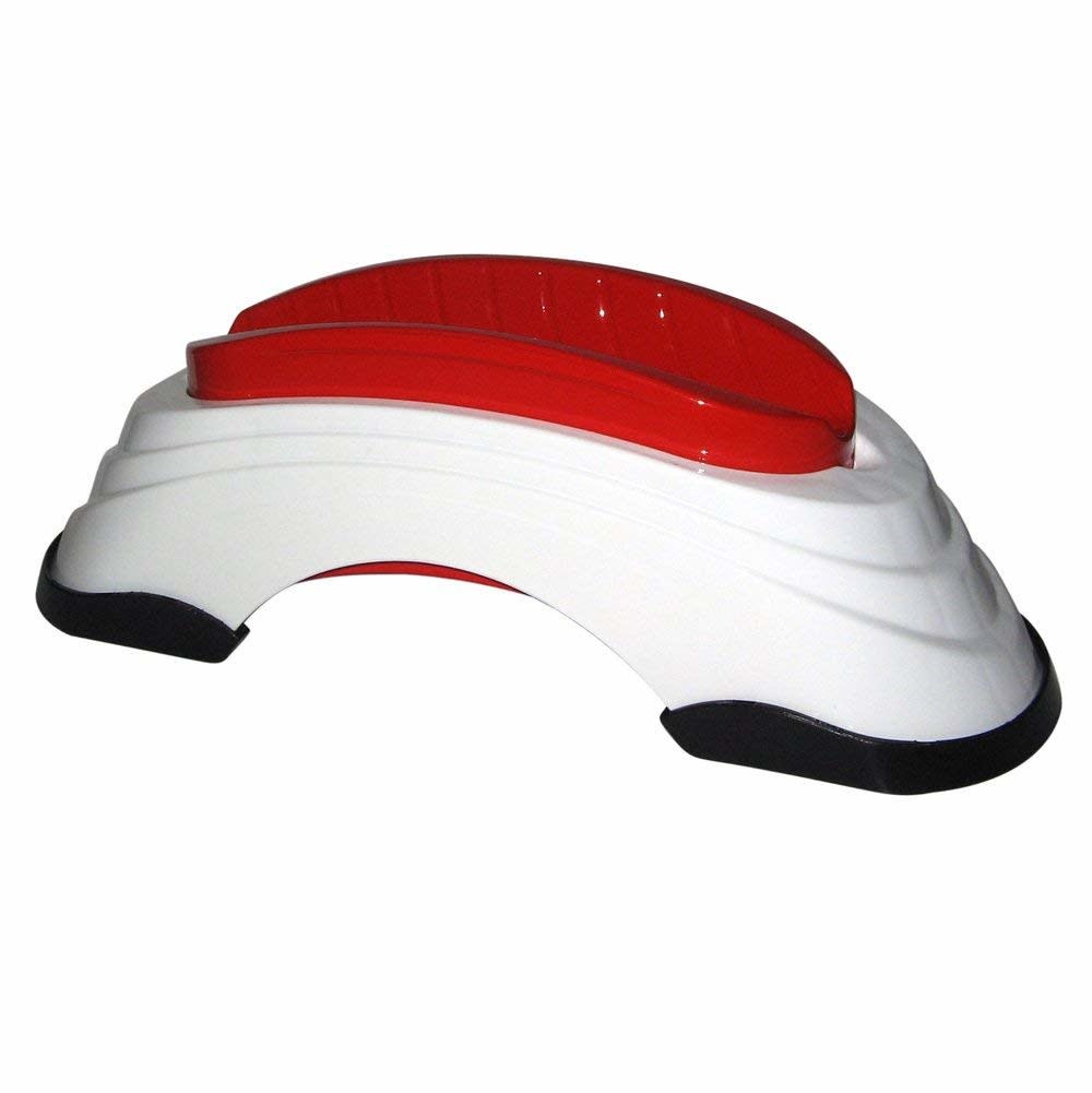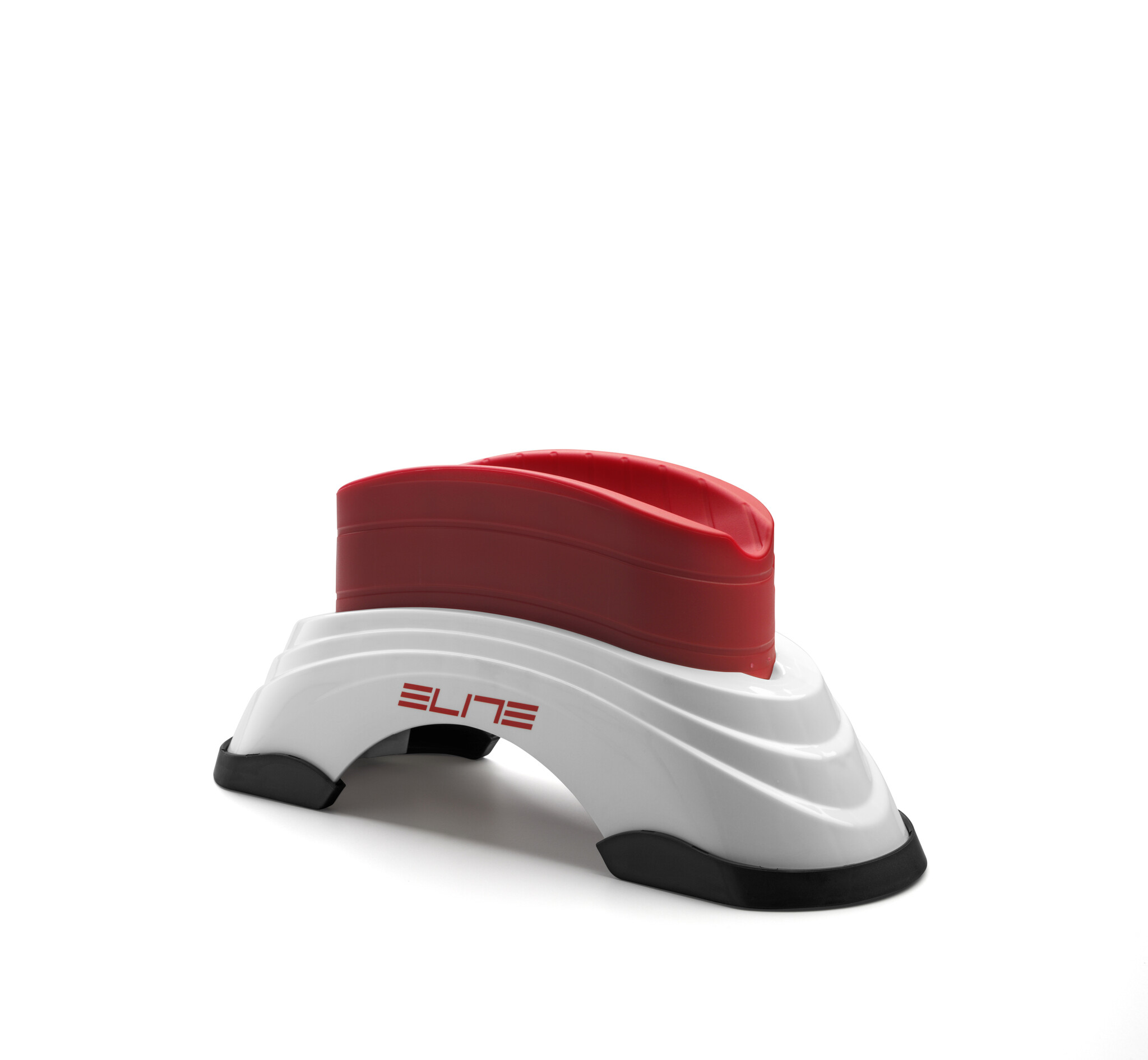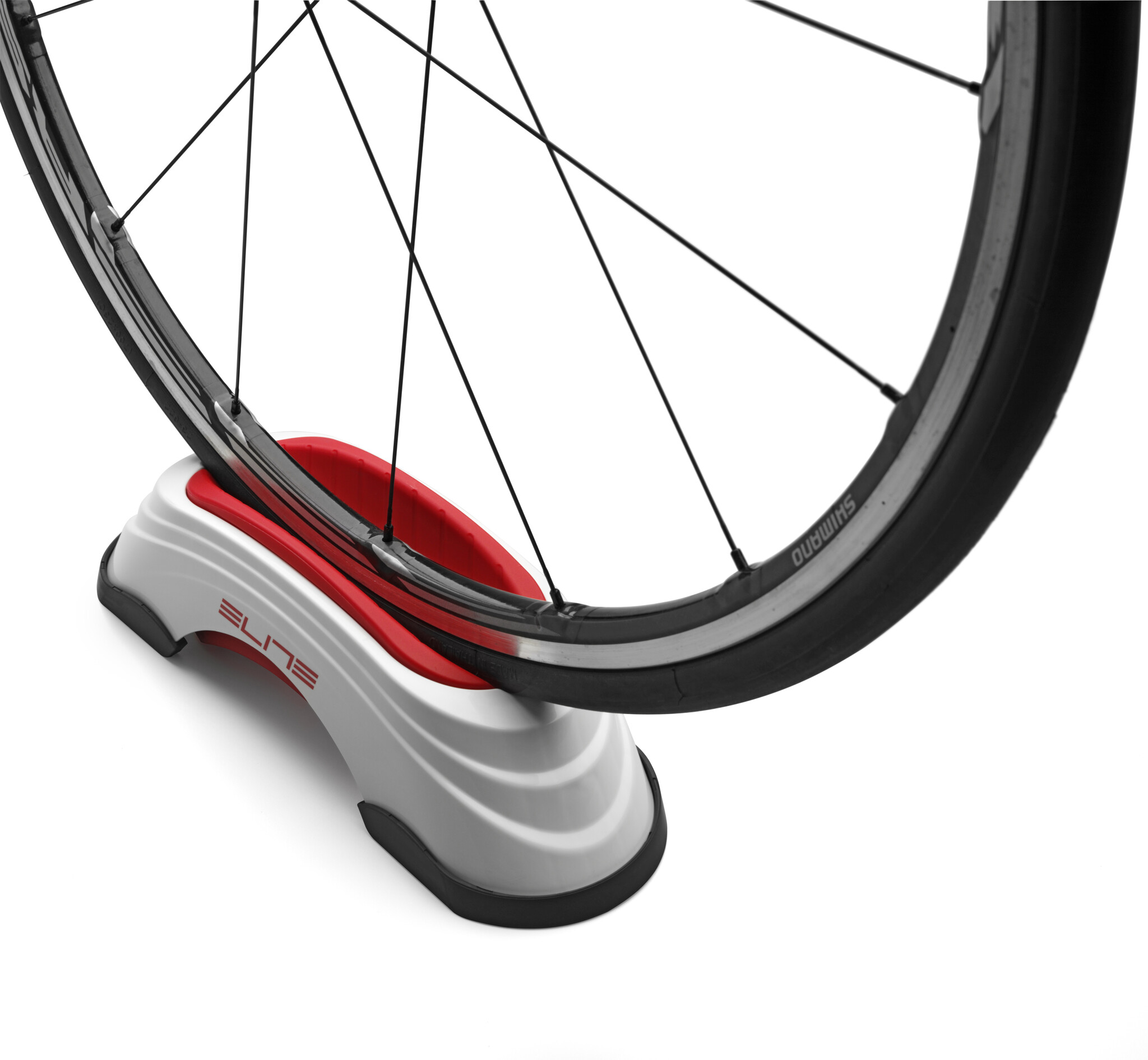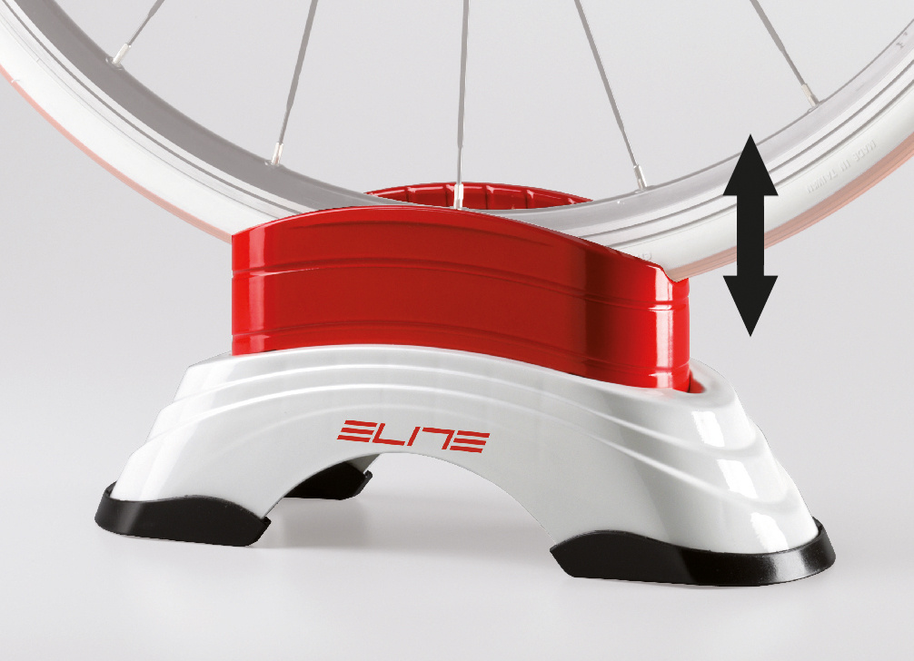 The Elite Su Sta Elevator Block is a front wheel trainer block that's compatible with road and MTB tires. It has five height levels for simulating different grades. The rubber base prevents the front wheel from slipping. It attaches to the frame of the trainer for easy storage.