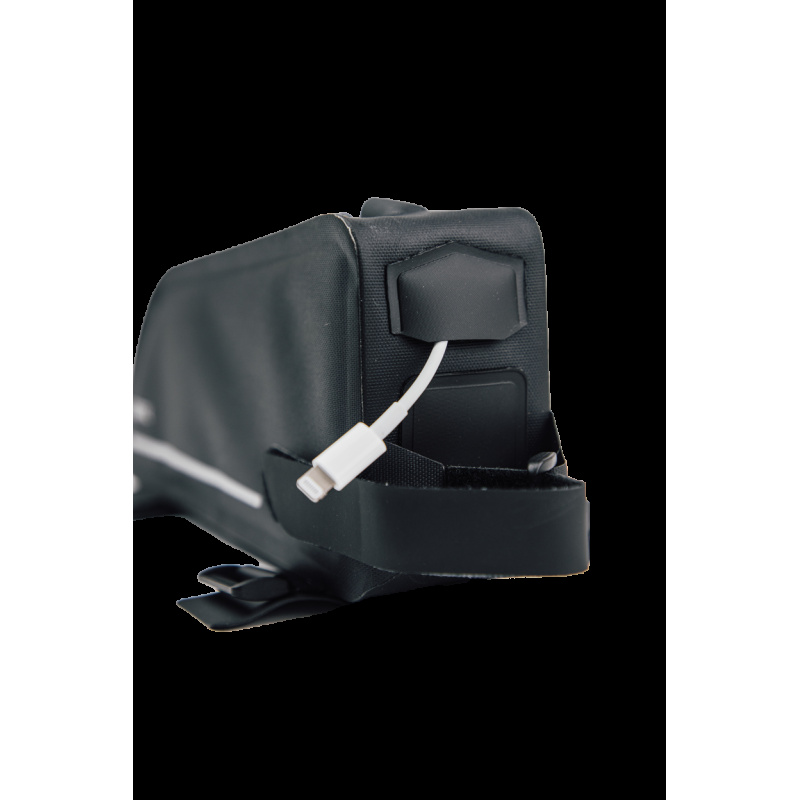 To install the bag, place it flat on the top tube of your bike, ensuring that the front of the bag is positioned as close as possible to the stem, but not touching it. Lock the bag by tightening the straps, starting with the strap furthest from the stem and ending with the strap around the head tube.